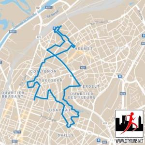 Duur: Ongeveer anderhalf uur. Deze duur is een gemiddelde en slechts indicatief. De duur kan sterk variëren in functie van hoe snel de verschillende deelnemers lopen.